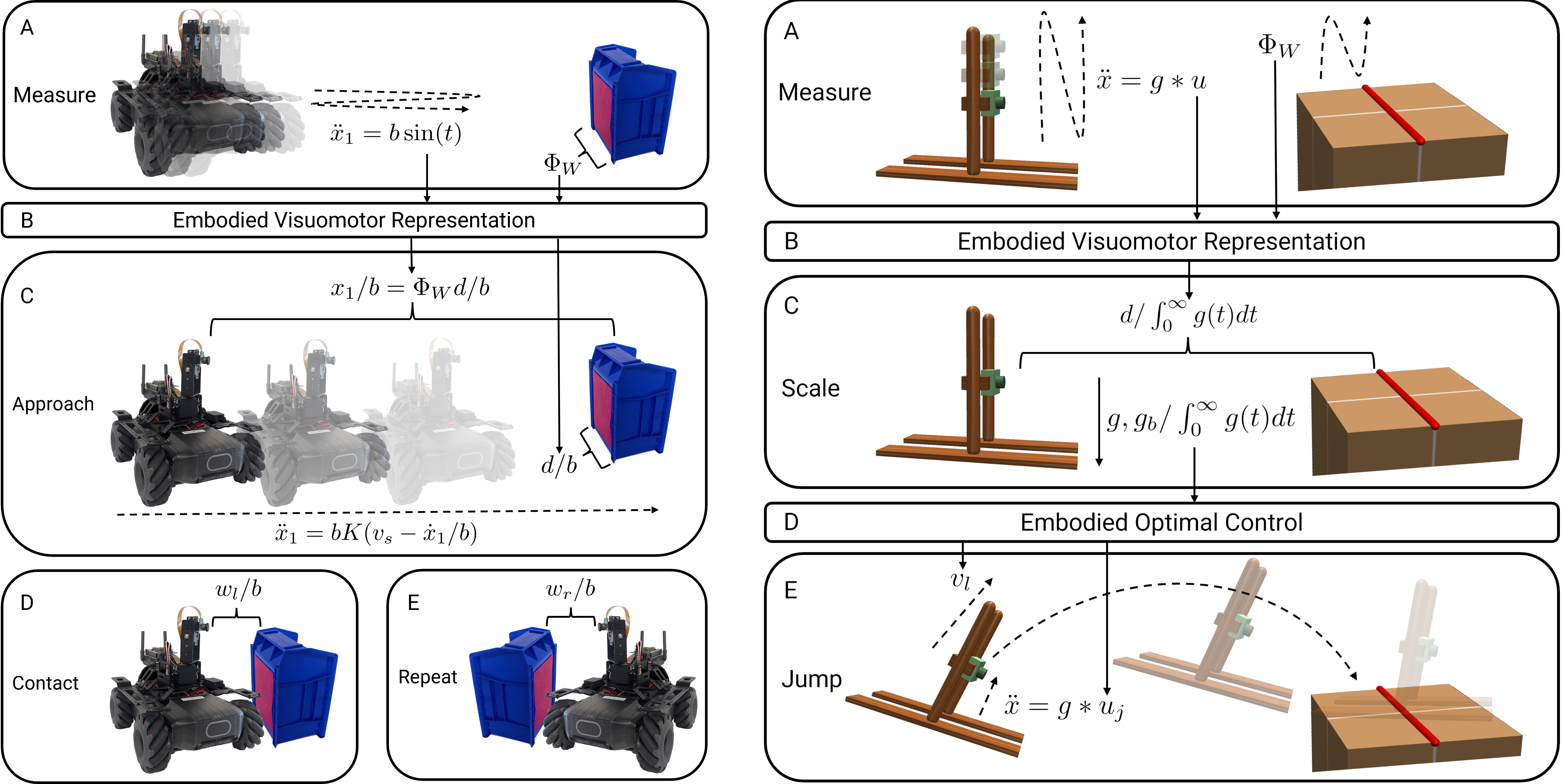 We introduce Embodied Visuomotor Representation, a methodology for inferring distance in a unit implied by action. With it a robot without knowledge of its size, environmental scale, or strength can quickly learn to touch and clear obstacles within seconds of operation. Likewise, in simulation, an agent without knowledge of its mass or strength can successfully jump across a gap of unknown size after a few test oscillations.