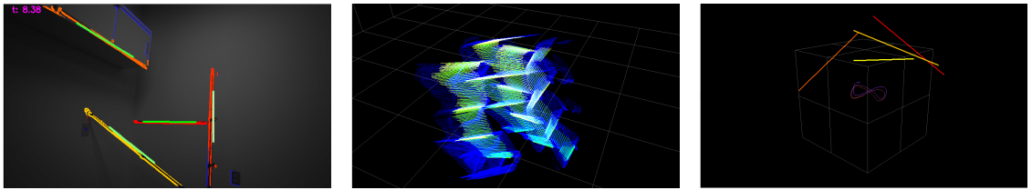 Correspondence between two consecutive frames can be costly to compute and suffers from varying accuracy. If a camera observes a straight line as it moves, the image of the line sweeps a smooth surface in image-space time. Analyzing its shape gives information about odometry. Further, its estimation requires only differentially computed updates from point-to-line associations. By constraining the surfaces with the inertia measurements from an onboard IMU sensor, the dimensionality of the solution space is greatly reduced.